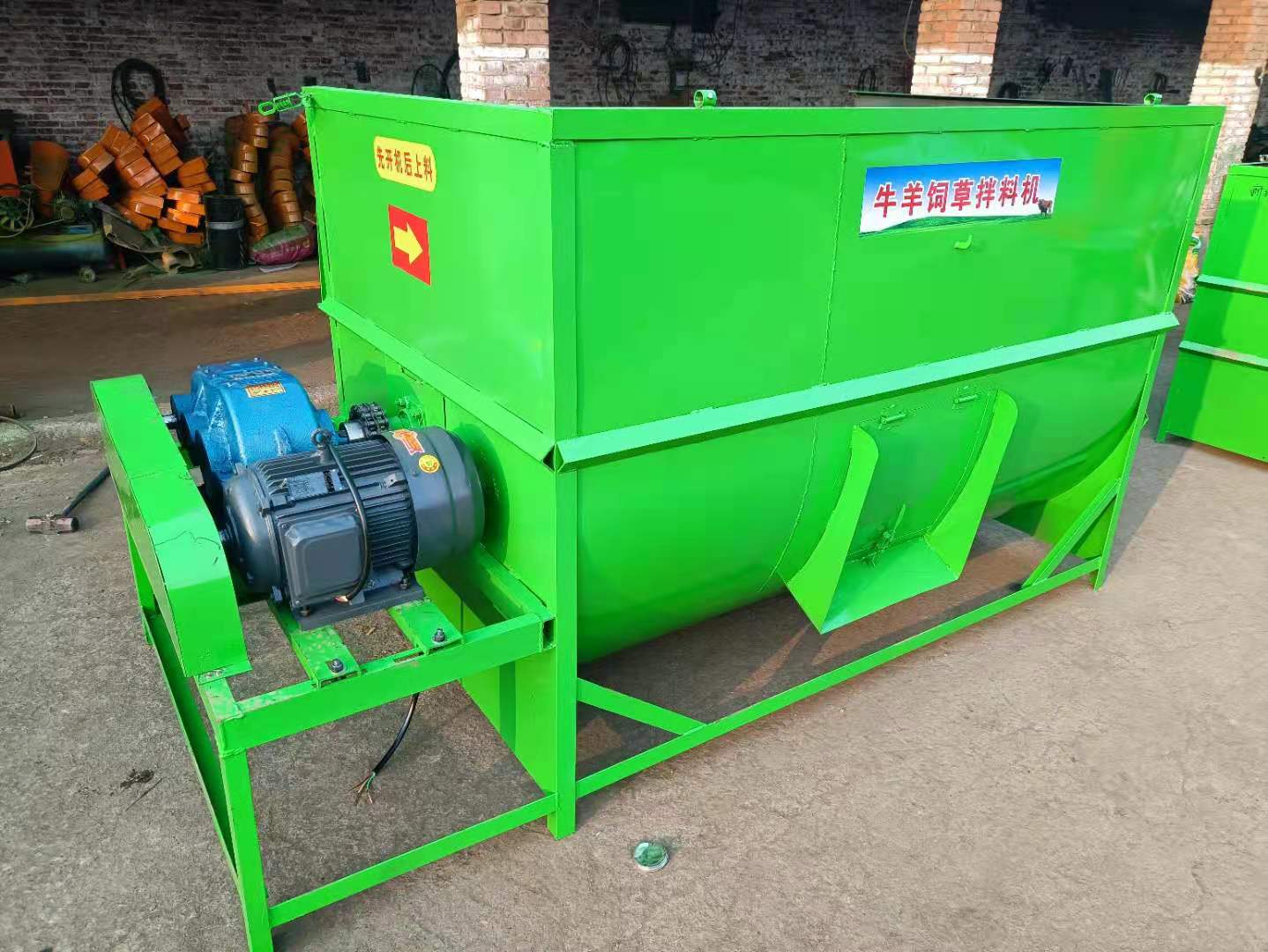 相比上一個臥式攪拌機,這款攪拌機可以將整捆的秸稈、草磚等物料撕碎攪拌,加入精料、添加劑一起攪拌。常見型號為2-5立方,主要用于有一定規(guī)模的養(yǎng)殖場養(yǎng)殖牛羊